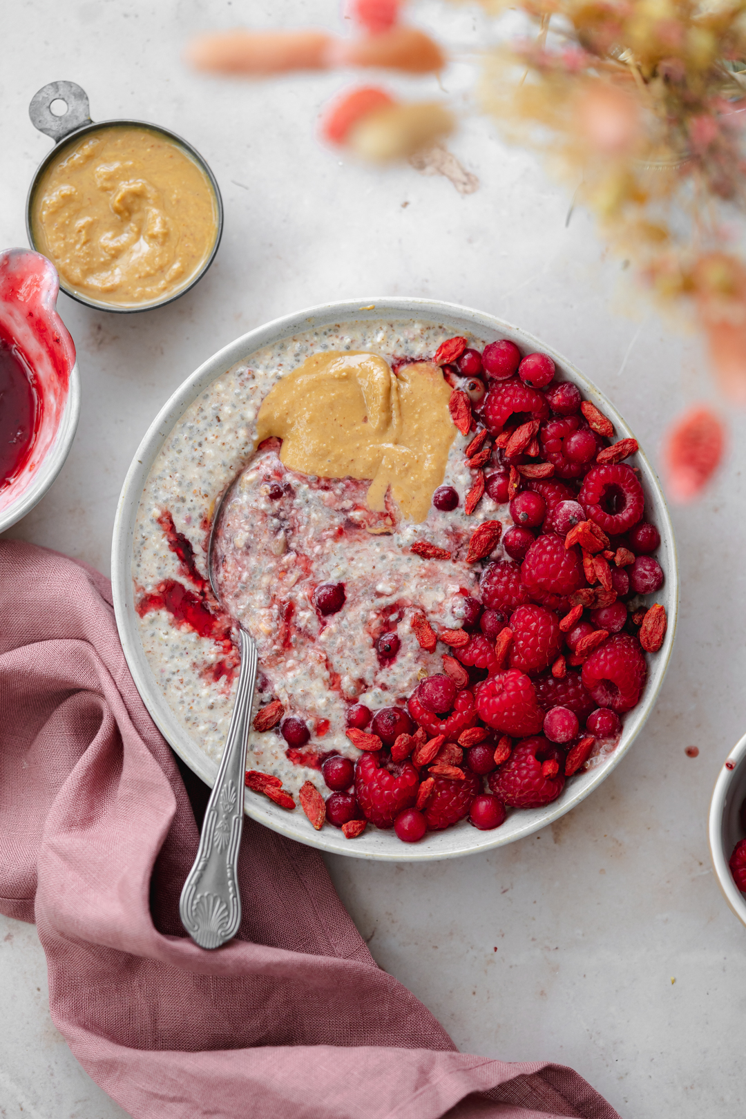 Fornece à mistura um teor relevante de proteína, hidratos de carbono complexos e fibra. Geralmente, em combinação com a farinha de aveia e de arroz integral, este pseudocereal contribui para a sensação de saciedade conferida e oferece estrutura às panquecas e waffles.